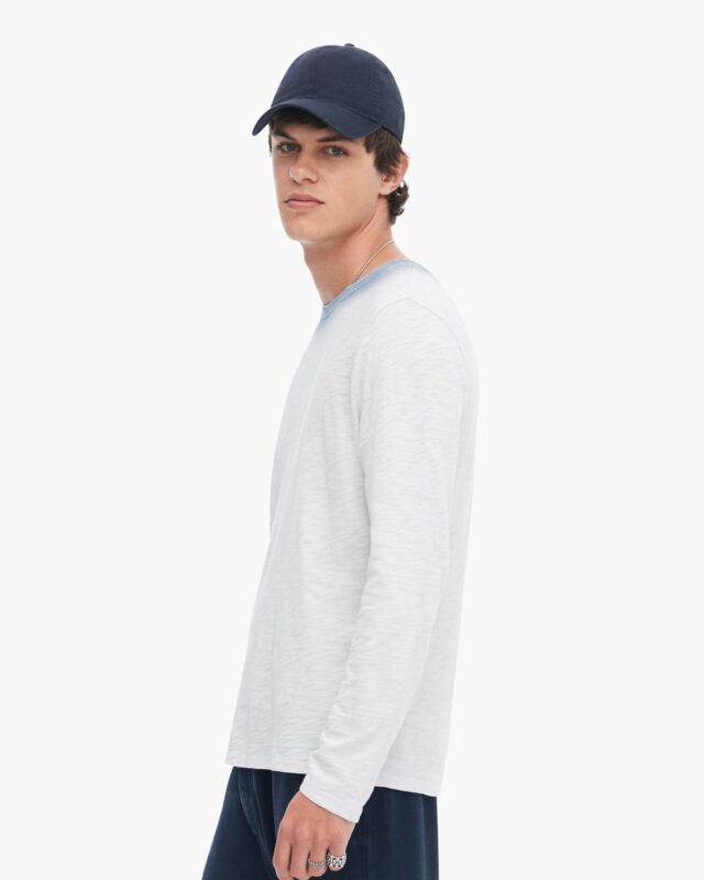 Spray Treatment Slub Jersey Destroyed Long Sleeve Crew Neck Tee – Silver-Wash Navy