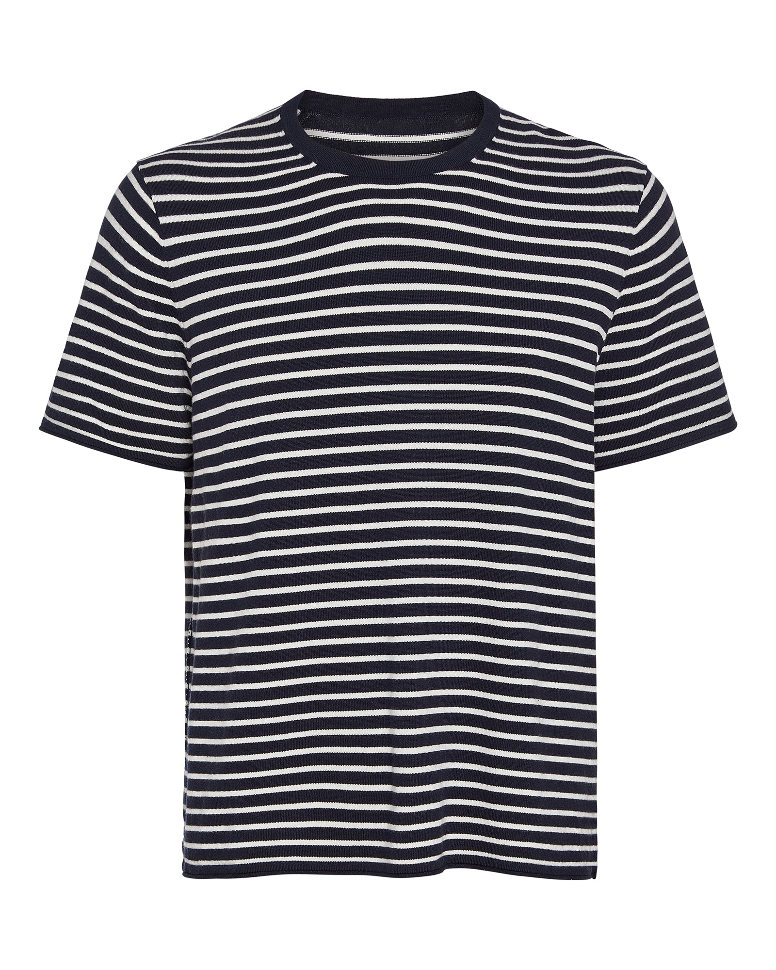 Cotton Cashmere Striped Crew Neck Tee – Midnight Chalk
