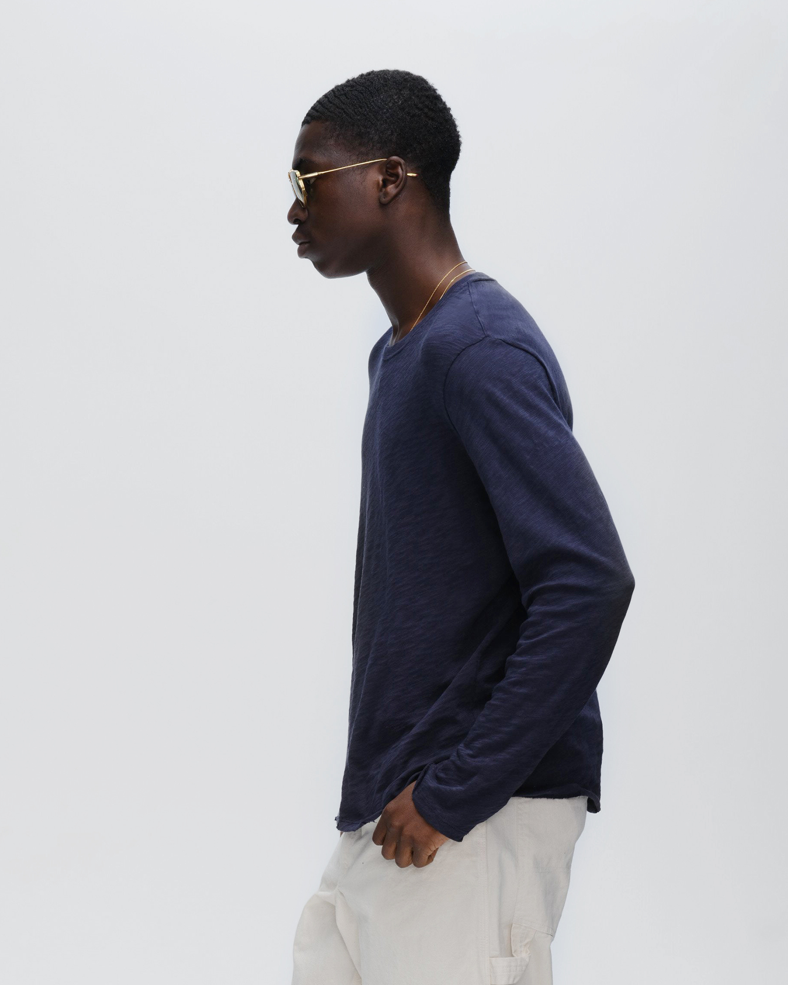 Slub Jersey Long Sleeve Destroyed Wash Tee – Midnight