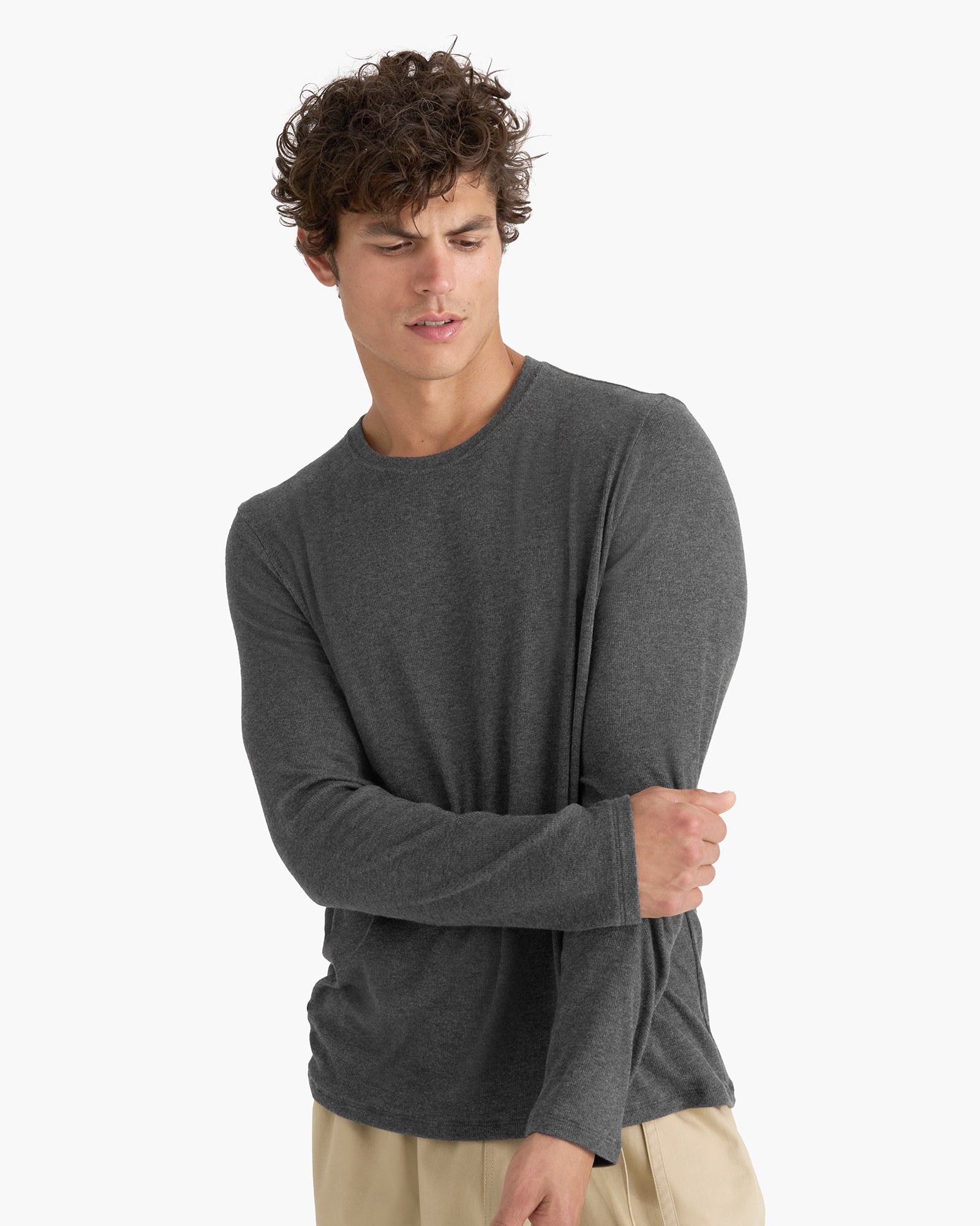 Modal Rib Long Sleeve Crew – Heather Coal