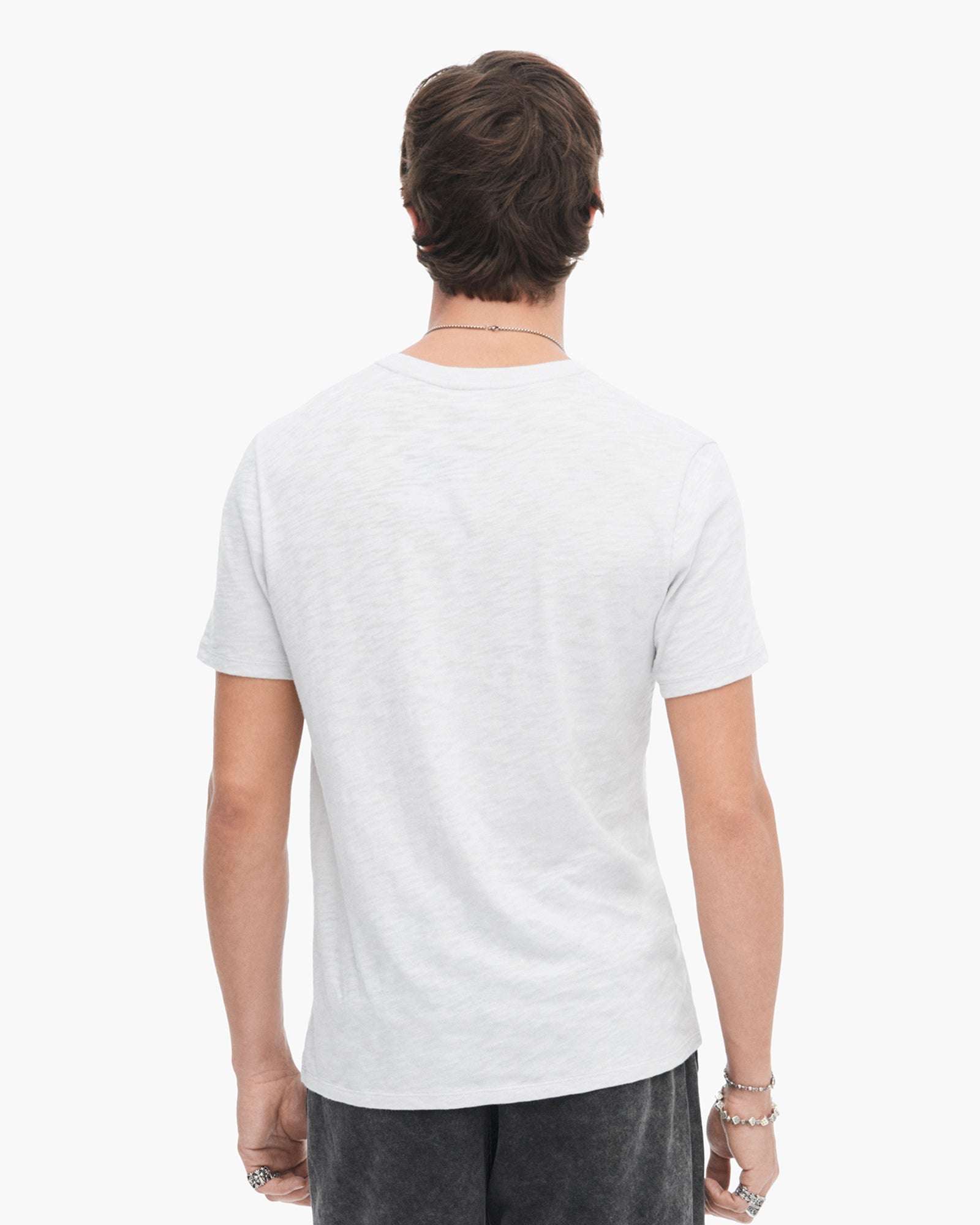 The Slub Jersey V-Neck Tee gets its texture from the uneven yarns of our unique Peruvian Cotton. It features a relaxed v-neck silhouette and just the right amount of sheer. The loose weave of this heavier Cotton molds modestly to the body offering the perfect drape.