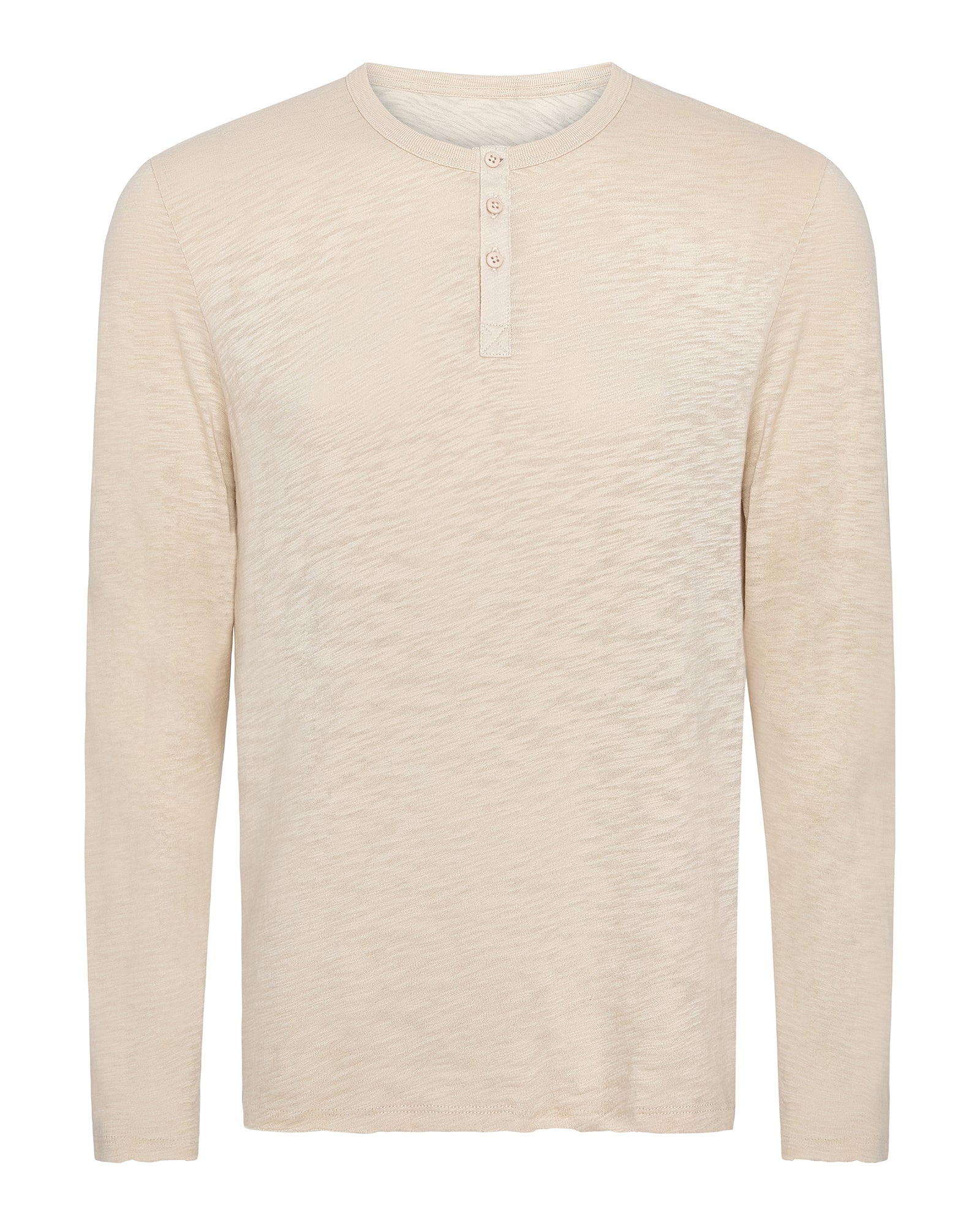 Slub Jersey Destroyed Wash Henley – Bleached Oak