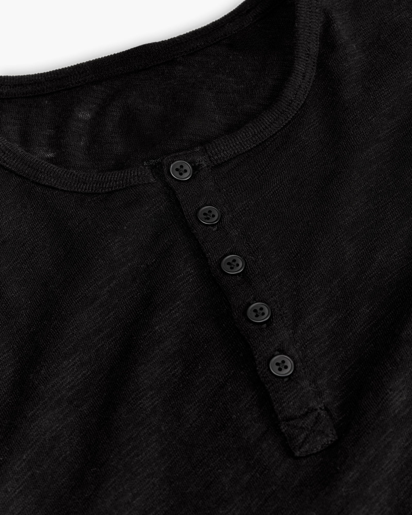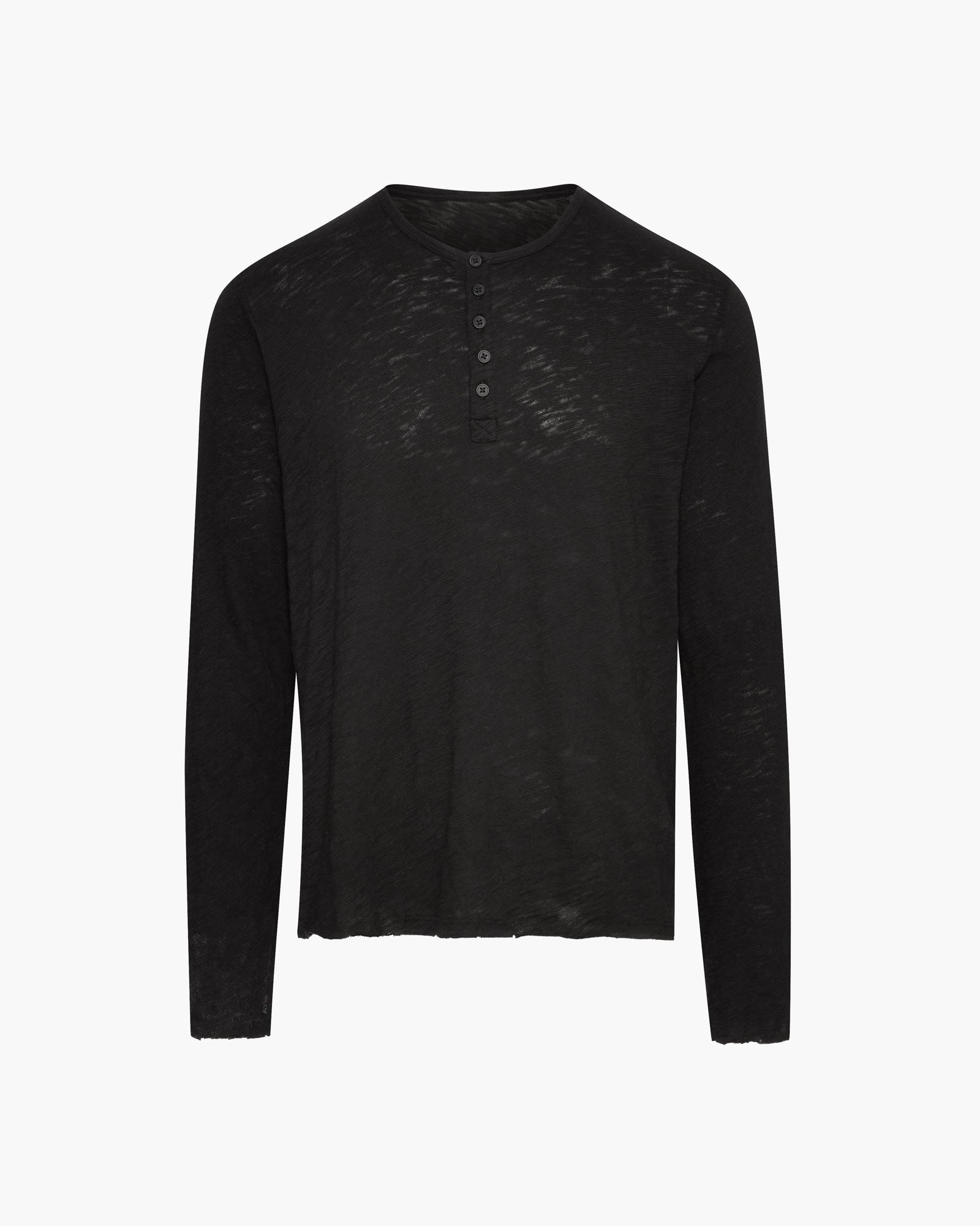 Slub Jersey Destroyed Wash Henley – Black